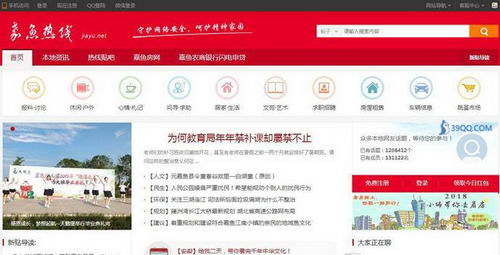创办于2002年5月,是嘉鱼县最早开通的本地网站平台,嘉鱼热线网致力于打造一个专业、实用、真实、简单、丰富的嘉鱼生活信息发布论坛平台,向全国推广嘉鱼,向市民传递本地各类信息,嘉鱼热线内容涵盖嘉鱼新闻、二手房出售、房屋租售、求职招聘等。